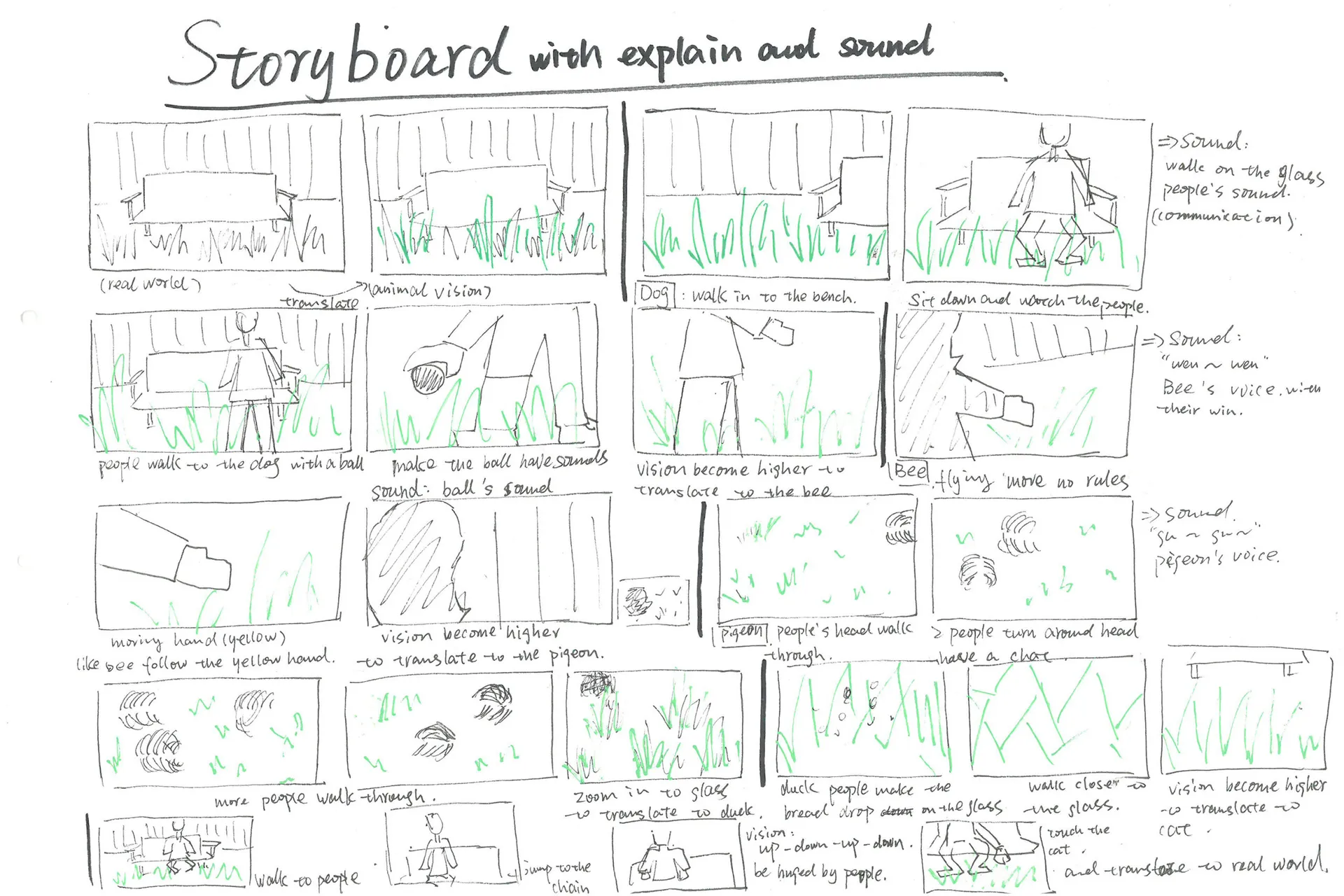 The program begins with the human-animal relationship, how pets, working animals, and wildlife relate to people, and what kind of impact they have on each other, for better or for worse! As the research continued, I focused more on animals that are very common in our daily lives. I hope that through my project I can make people value animals as a very involved player in our lives and improve the relationship between animals and people.The animation about the animal’s vision what’s the vision like in their eyes. In the animation, it contains five different animals: dogs, bees, pigeons, ducks and cats to show what people look like and what they changed in their eyes. My intention is that people can pay more attention to the participation of animals in our lives and improve the relationship between us and animals. Therefore, my animation shows human activities from the vision of animals rather than entering from the vision of humans, depicting what the five animals see people as. And the beginning and end use photos of the real world to create contrast and transformation.